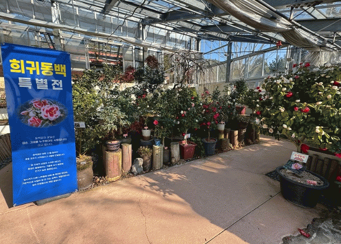 이번 전시회는 컵동백, 무늬동백, 애기동백 등 다양한 품종의 동백꽃이 전시되어 동백의 화려한 아름다움과 순백색의 백매화와 붉은빛의 홍매화로 매화의 순수미를 가까이서 느낄 수 있다.