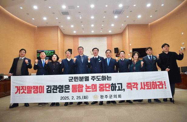 또한, “전주시와 통합을 반대하는 완주군민의 뜻에는 아랑곳 하지 않고, 통합찬성단체에 예산을 지원하며, 싸움을 부추기고 있다”고 성토했다.