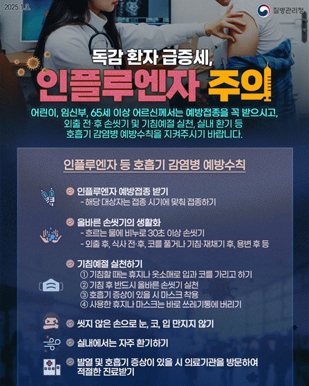 최근 전북 보건환경연구원이 분석한 도내 호흡기 바이러스 감시 결과, 2025년 8주차(2월 17일 주간) 인플루엔자 양성률이 21.05%로 전주 대비 4배 증가했다.