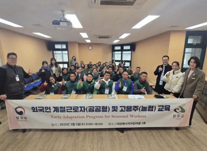 유희태 완주군수는 “완주군은 공공형 계절근로자들이 안정적으로 적응하고 안전하게 근무할 수 있도록 체계적인 지원을 아끼지 않겠다”며 “이번 조기적응 교육을 통해 근로자들이 한국 생활과 농작업에 빠르게 익숙해질 수 있기를 바라고 앞으로도 지속적인 교육과 상담 지원으로 근로 환경을 더욱 개선해 나가겠다”고 밝혔다.