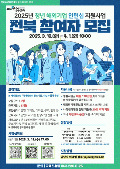 진흥원 김대식 원장은 “이번 사업이 단순한 해외 경험을 넘어 실질적인 취업과 경력 개발로 이어질 수 있도록 철저히 운영할 계획”이라며, “특히 재외동포청과의 협력을 통해 보다 안정적인 해외 인턴십 환경을 조성할 것”이라고 밝혔다.