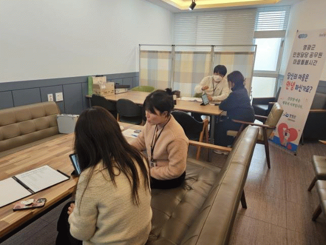 군 관계자는 “민원담당 공무원들의 정신건강관리는 업무 효율성 및 친절 민원서비스 제공에 중대한 영향을 미치므로, 직원들이 바쁜 일상 속에서도 스스로 몸과 마음을 챙길 수 있도록 노력 하겠다”라고 말했다.