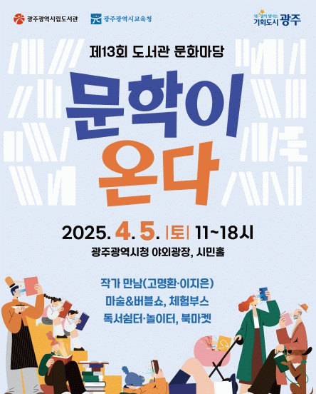 이날 시청 1층 시민홀에서는 오전 11시부터 오후 6시까지 광주시민 518명이 참여한 한강 작품 필사 전시가 열리며, 유명 작가 강연도 진행된다. AI로봇이 사진을 찍어주는 '문학이 온다' 포토존도 만나볼 수 있다.