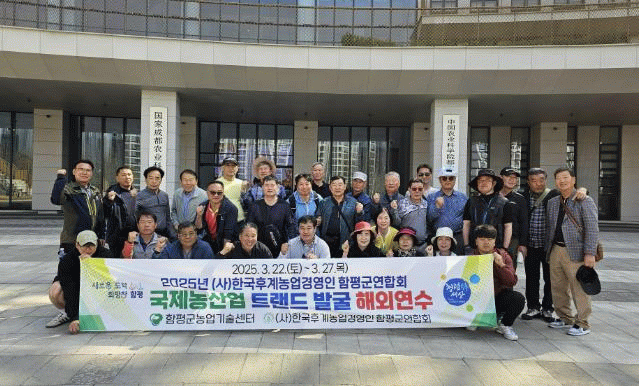 함평군은 31일 “지역 농업인을 대상으로 ‘2025년 농업경영인 국제 농산업 트렌드 발굴을 위한 해외 탐방’이 지난 22일부터 27일까지 중국 청두에서 진행됐다”고 밝혔다.