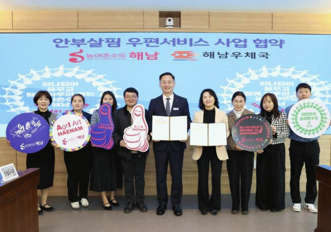 지난 28일 열린 업무협약식에는 손명도 해남군 부군수, 김숙영 해남우체국장 등이 참석해 우편 배달을 통한 취약계층 안부살피기에 긴밀히 협력해 나가기로 했다.