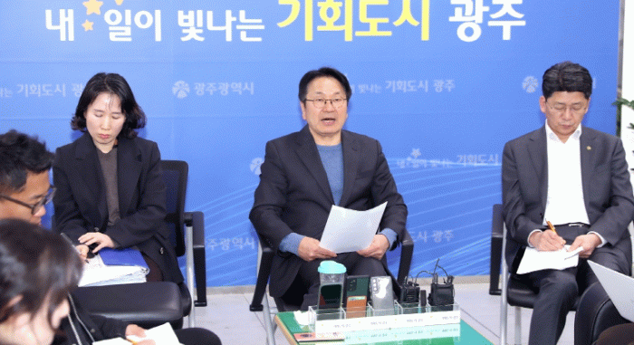 강기정 광주광역시장은 31일 시청에서 기자들과 만나 “실국장단과 매일 아침 진행하는 일일상황회의를 탄핵 선고 때까지 일일경제상황점검회의로 전환한다”며 “추경‧통상‧민생경제의 일일 점검을 통해 신속·탄력적으로 대응하겠다”고 밝혔다.