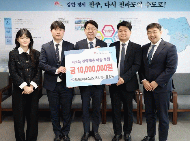 김성률 BMW(주)내쇼날모터스 대표는 “사회·경제적으로 어려운 상황에서 기부하는 성금이 어려운 아동·청소년들 성장에 도움이 되기를 바란다”면서 “앞으로도 지속적인 나눔을 실천하면서 지역사회와 함께 성장하는 기업이 되기 위해 노력할 것”이라고 밝혔다.