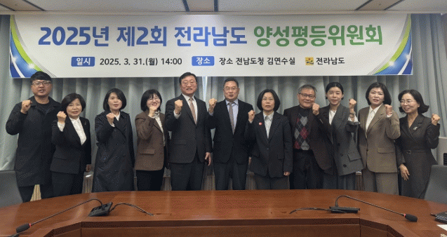 위원회에선 명창환 전남도 행정부지사와 사회단체·지역기업·대학 등 각계각층의 전문가로 구성된 양성평등위원회 위원 11명이 참석한 가운데, 2025년 전남도 양성평등 기금 공모사업 지원 대상자 선정, 지정사업에 대한 공모사업 전환 등에 대한 안건을 심의했다.