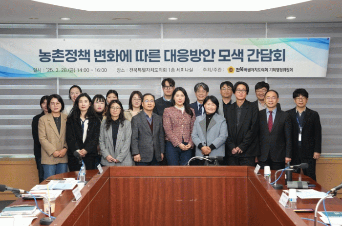 한편, 간담회를 개최한 김슬지 의원은 “농업·농촌을 둘러싼 여건이 날로 어려워지고 있는 상황에서, 지역 주민의 삶의 질을 높이고 지속 가능한 농촌을 만들기 위해 현장 활동가들 대한 처우개선뿐만 아니라 지속적으로 일할 수 있는 시스템을 만들 수 있도록 전북자치도가 더욱 노력해 줄 것과, 금번에 제정되는 조례에 담지 못한 부분에 대해서는 지속적인 입법 활동을 통해 보완해 나가겠다”라고 밝혔다.