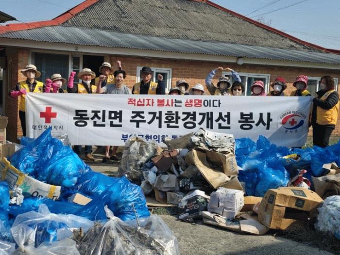 적십자 봉사회원 20여명은 집 안팎에 쌓여 있던 쓰레기들을 정리․배출하고 정성껏 청소하여, 쾌적한 주거환경을 만들기 위해 힘을 모았다.