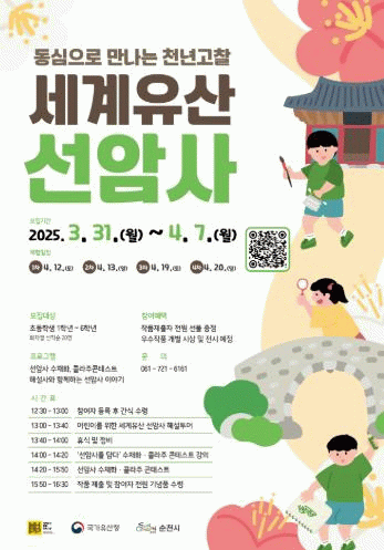 시 관계자는 “따뜻한 봄날 자라나는 아이들이 천년고찰 선암사에서 우리의 소중한 세계유산을 온전히 느끼고, 특별한 봄날의 추억을 만드는 소중한 시간을 가지길 바란다”고 말했다.