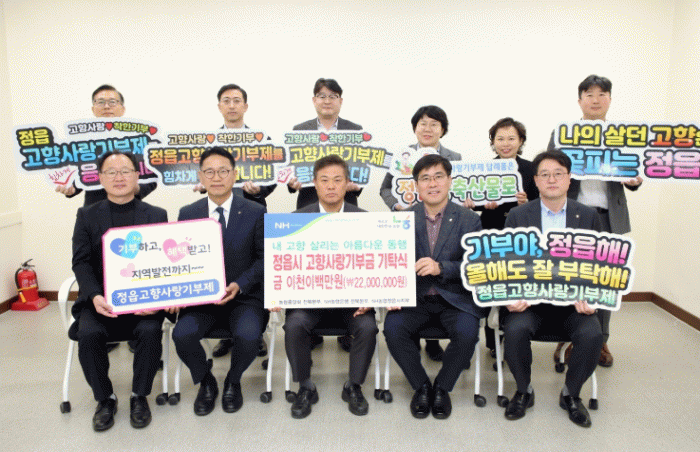 농협중앙회와 NH농협 전북지역본부는 1일 정읍시청에서 기탁식을 열고, 고향사랑기부금 2200만원을 전달했다.