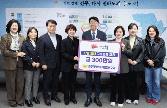 박은주 회장은 ‘우리의 작은 정성이 피해주민들께 희망이 되어 다시 일어설 수 있는 힘이 되기를 바란다’면서 “전주시 사행연은 앞으로도 연대와 나눔의 가치를 실천하며 지역사회와 협력을 통해 사회적 책임을 다하는데 노력하겠다”고 전했다.