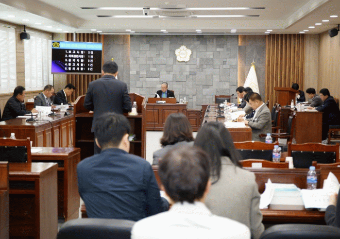 김강헌 의장은 회의에 앞서 “역대 최악의 산불로 피해를 입은 이재민과 피해자 여러분께 깊은 위로의 말씀을 드린다”며, “오늘부터 365일 24시간 체제로 운영되는 재난안전상황실이 군민 안전의 컨트롤타워 역할을 충실히 해주기 바란다”고 당부했다. 또한, “다가오는 한식에는 입산객이 늘어날 것으로 예상된다”며, “쓰레기 소각이나 논·밭두렁 태우기 등 부주의로 인한 산불이 발생하지 않도록 예방에 힘써달라”고 집행부에 요청했다.