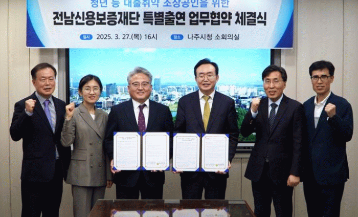 나주시는 최근 시청 소회의실에서 전남신용보증재단와 청년·중저신용·저소득 소상공인의 금융 지원을 위한 특별출연 업무협약을 했다고 1일 밝혔다.