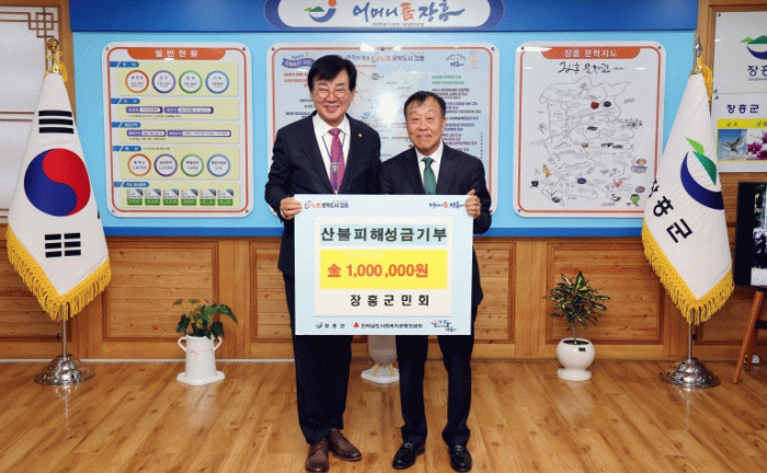 주재용 장흥군민회장은 “산불피해로 어려움을 겪고 있는 지역주민들에게 조금이나마 힘이 되고 싶다.”며 “하루빨리 피해 복구가 이루어져 주민들이 일상으로 돌아갈 수 있기를 바란다”고 전했다.