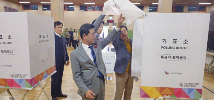 이날 정인화 시장은 중동초등학교에 마련된 제5투표소를 방문해 신분증 확인 절차와 기표대 및 투표함 설치 상태, 장애인 투표 편의 장비 구비 등 투표소 설비상황을 살폈으며, 불법 카메라 설치 여부 등 투표소 준비 전반을 꼼꼼하게 점검했다.
