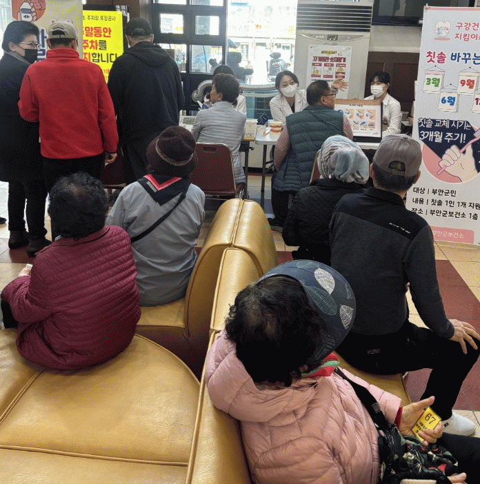 한편 보건소 구강보건실에서는 노인의치사업, 취약계층 구강검진 및 교육, 초등학교 불소도포사업 등을 지속적으로 추진하고 있으며 자세한 사항은 부안군보건소 구강보건실에 문의하면 안내받을 수 있다.