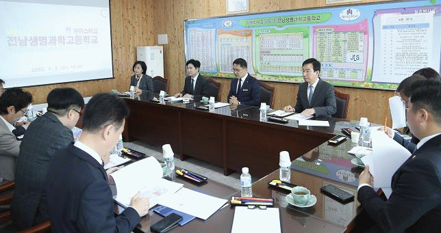 이날 김대중 교육감은 전남생명과학고 교육가족과의 차담회를 갖고 마이스터고 친환경 농업 교육과정이 산업 현장과 더욱 밀접하게 연계될 수 있도록 실무 중심의 직무 교육 강화 방안을 모색했다.