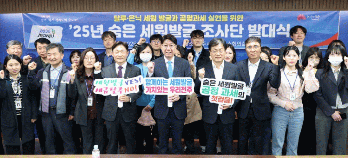 시는 4일 시청 3층 소회의실에서 우범기 전주시장과 시청과 완산·덕진구청의 세무공무원 등이 참석한 가운데 ‘2025년 숨은 세원발굴 조사단’의 발대식을 가졌다.