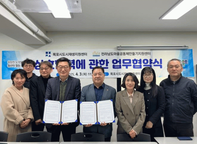 권용선 목포시도시재생지원센터장은 “원도심의 침체, 인구 감소 및 고령화가 지속되는 상황에서 마을공동체 회복과 발전을 위해 주민들의 자치 역량을 강화하고, 도시재생의 실질적 효과를 극대화할 필요가 있다”며 “양 기관이 지역 현안에 맞는 사업을 발굴하고 적극 협력해 나가겠다”고 밝혔다.