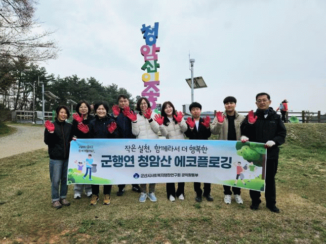지난 5일 식목일을 맞이하여 열린 행사에는 군산시 사회복지행정연구회 회원 20여 명이 참여해 청암산 둘레길을 따라 걸으며 쓰레기를 수거하는 등 환경 정화 활동에 힘썼다