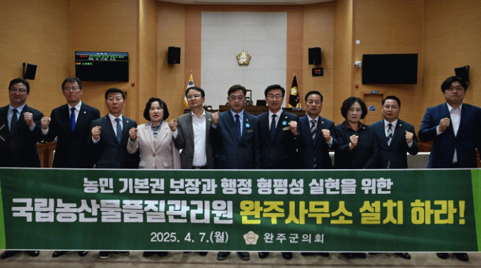심 의원은 “완주군은 그동안 사무소 유치를 위해 여러 차례 노력했으며, 2022년에는 완주군 의회가 개소 촉구 건의안을 채택하고, 농업인 서명운동을 통해 3분의 1이상의 서명을 받아 청원서를 전달하기도 했다”고 전했다.