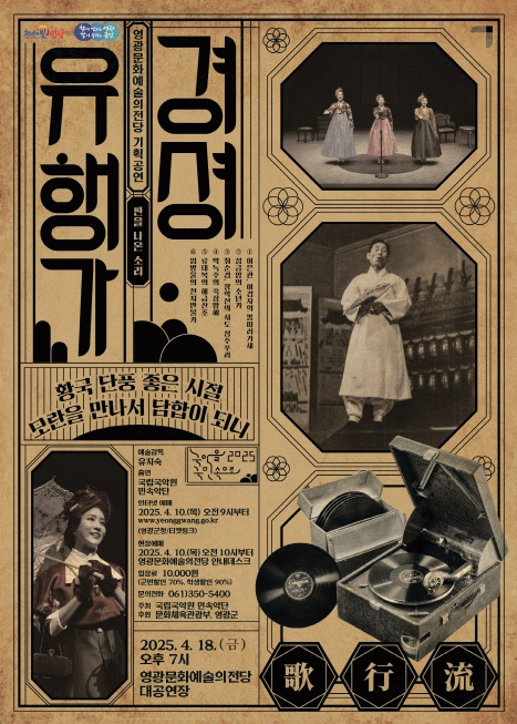 이번 공연은 국립국악원의 ‘지역 공연예술 활성화를 위한 2025 '국악을 국민속으로' 지원사업’으로 전통과 현대를 넘나드는 독창적인 이야기와 메시지로 일제강점기 대중에게 선풍적인 인기를 얻은 당대 유행가를 만날 수 있다.