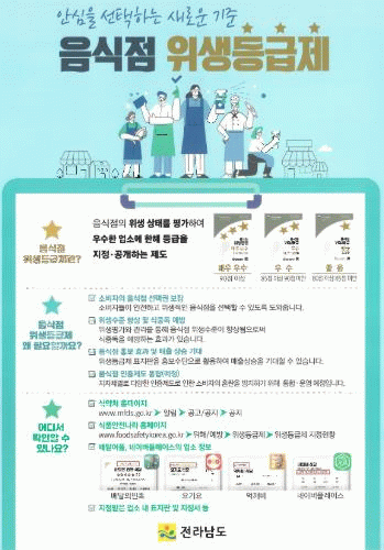‘음식점 위생등급제’는 음식점의 위생 상태를 평가하고, 우수한 업소를 3개 등급(매우우수, 우수, 좋음)으로 지정․공개하는 제도다.