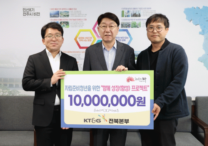 우범기 전주시장은 “자립준비청년들이 건강한 사회의 일원으로 성장할 수 있도록 후원해주신 KT&G 전북본부에 감사드린다”면서 “앞으로도 지역사회와 기업이 협력하여 청년들의 미래를 응원하는 의미 있는 사업을 이어가겠다”고 말했다.
