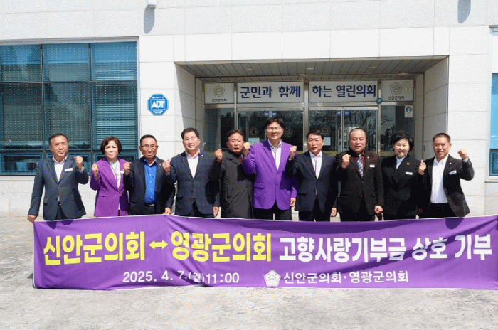 이상주 신안군의회 의장은 “영광군의회와의 이번 상호기부를 계기로 두 지역이 더욱 긴밀히 협력하길 바란다”라며 “앞으로도 지속적인 교류와 협력을 통해 상생 발전을 이루겠다”라고 밝혔다.