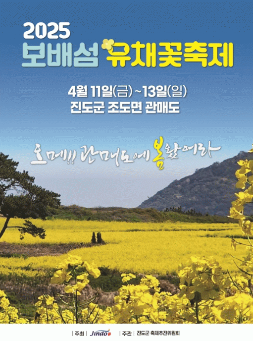 진도군 관광과 관계자는 “봄의 향기를 가득 담은 관매도에서 유채꽃과 함께하는 특별한 봄을 맞이해 보세요!”라며, “4월 11일에 관매도에서 만나요”라고 말했다.