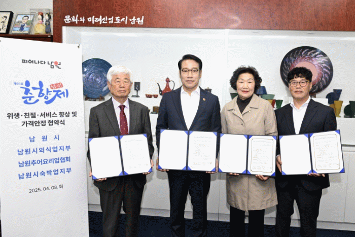 남원시는 합리적인 가격과 더불어 위생·서비스 수준을 강화하고자 소비자식품위생감시원이 관내 식품·공중위생업소를 대상으로 사전 지도· 점검을 실시하고 있으며, 이를 통해 위생관리 실태를 점검하여 안전한 먹거리와 편안한 숙박을 제공하기 위해 최선을 다하고 있다.