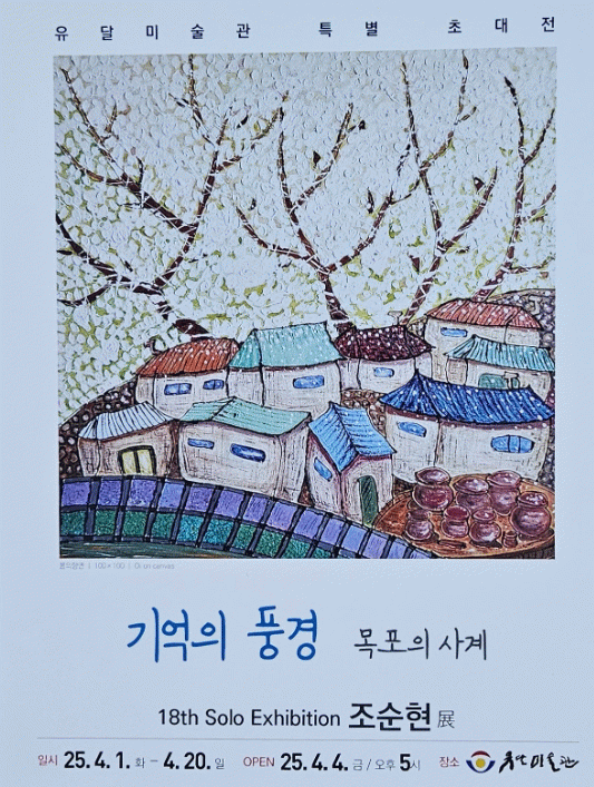 유달미술관에서는 조순현 작가의 개인전 ‘기억의 풍경: 목포의 사계’가 오는 4월 20일까지 열린다. 작가만의 독창적인 시선을 통해 재해석된 목포의 사계절 풍경을 감상할 수 있다.
