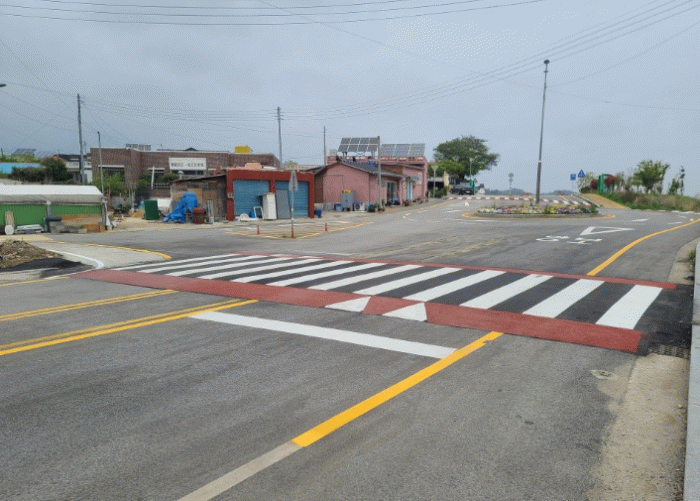 선형 개선을 통해 굴곡진 도로 구조를 정비하여 교통 흐름을 원활하게 했으며, 보행 통행 구간을 명확히 표시해 보행자 안전성을 대폭 강화했다.