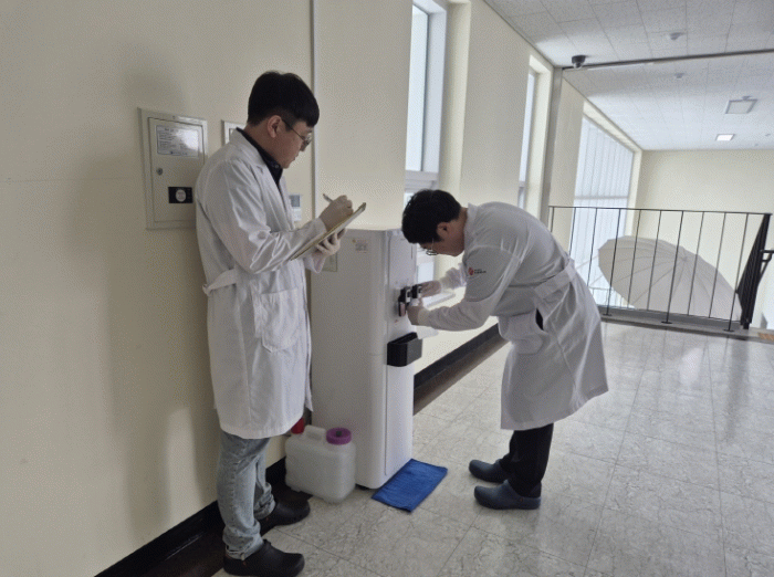 검사는 시설 내에서 먹는물로 이용하는 지하수와 정수기통과수를 대상으로 하며, 지하수는 질산성질소 등 48개 항목, 정수기통과수는 총대장균군 등 2개 항목을 검사한다.