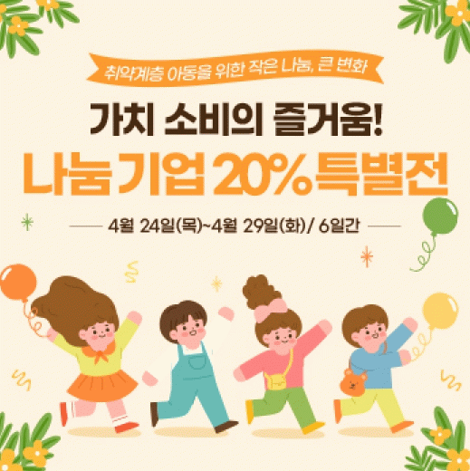 한편, 곡성몰은 지난 4월 17일부터 29일까지 나눔 기업을 응원하는 댓글 이벤트를 진행하며 추첨을 통해 1만 원 할인 쿠폰을 증정할 계획이다. 또한, 매주 수요일마다 진행하는 수퍼딜 30% 기획전과 카카오톡 플러스 친구 이벤트 등을 통해 소비자 만족도를 높이는 데 주력하고 있다.