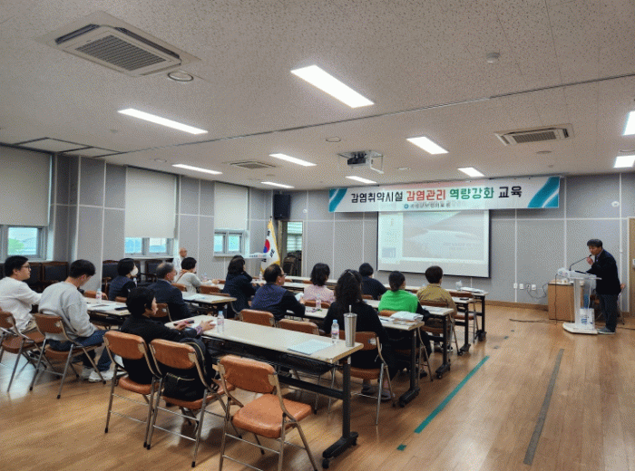 감염취약시설 방역관리자 및 종사자 30여 명을 대상으로 코로나19 같은 신종 감염병이 집단 발생할 시 신속하고 체계적으로 대응하여 지역사회 확산을 방지하고 피해를 최소화하기 위해 이론과 실무 교육을 병행하여 진행했다.
