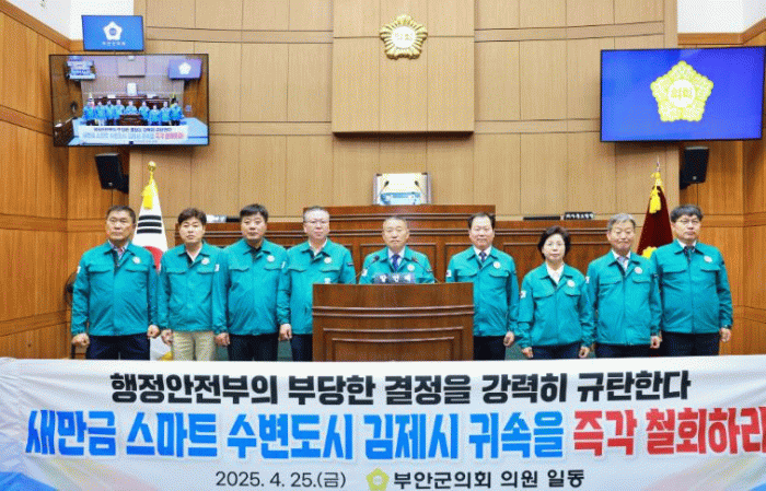 이번 성명은 지난 4월 23일, 행정안전부가 새만금 스마트 수변도시의 관할 지자체를 김제시로 최종 결정한 데 따른 조치로, 부안군의회는 이 결정에 대해 깊은 유감을 표명하며, 이는 부안군민의 희생과 공헌을 철저히 외면한 것이라고 강하게 비판했다.