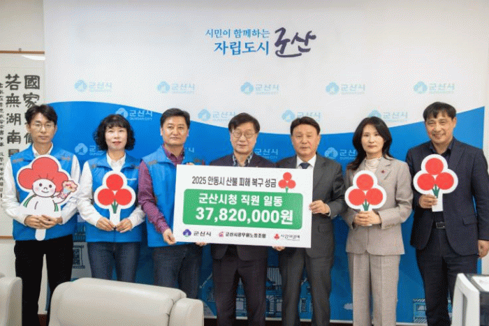 이번 성금은 최근 산불 피해로 안타깝게 삶의 터전을 잃은 안동 시민들에게 실질적인 도움을 제공하고자 군산시 공직자들이 한마음으로 정성을 모아 마련했다.