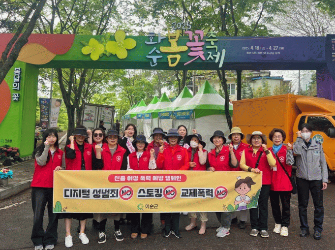 화순군 · 화순경찰서 · 여성일상지킴이 · 어울림가정폭력상담센터 · 여성친화도시군민참여단과 함께한 이번 캠페인은 최근 사회적 문제로 대두되고 있는 신종 여성 폭력인 디지털 성범죄·스토킹·교제폭력의 심각성 전파 및 예방을 위한 홍보활동을 위해 마련됐다.