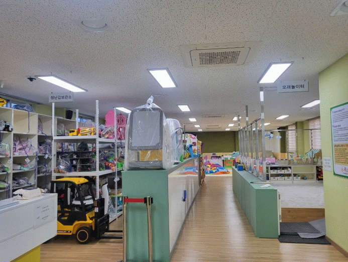 꼬꼬마 장난감 도서관은 실내 놀이터 이용 장난감을 포함하여 650여 점을 보유하고 있으며, 만 6세 이하 아동들의 발달에 맞추어 최대 4주 대여할 수 있도록 하고 있다.