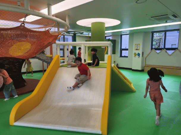 놀이터에는 △칼라트리 △칼라리프 △무지개 스파우트 △미끄럼틀 및 종합놀이대 등 아이들의 호기심과 신체 감각을 자극하는 놀이기구가 마련되어 있어 즐겁고 쾌적한 놀이 환경을 제공한다.