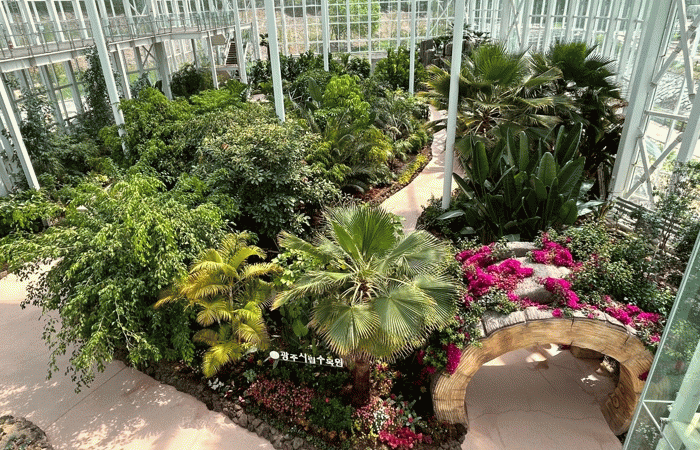 또 전시온실에서는 날씨에 구애받지 않고 다양한 열대 식물과 인공폭포, 분수 등을 감상할 수 있다. 야외 잔디광장과 한국정원 등 산책하기 좋고 자유롭게 마음껏 뛰어놀 수 있는 길이 조성돼 있어 가족단위 방문도 추천한다. 이용료는 무료다.