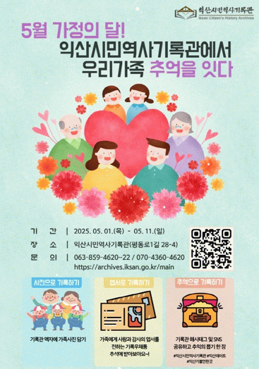 정헌율 익산시장은 "익산시민역사기록관은 단순히 과거를 보존하는 공간을 넘어, 오늘의 소중한 이야기를 미래로 잇는 시민 삶의 기록창고"라며 "가정의 달을 맞아 기록관에서 가족 간의 사랑을 되새기는 따뜻한 시간이 되길 바란다"고 전했다.