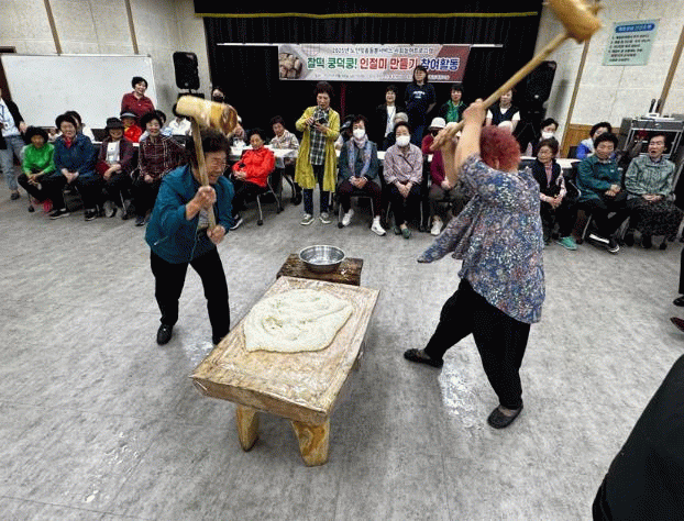 이번 체험은 노인맞춤돌봄서비스의 일환으로, 밥을 찌고 떡메로 찧은 뒤 손으로 빚고 고소한 콩고물을 입히는 전통 인절미 만들기 전 과정을 어르신들이 직접 체험하는 방식으로 운영됐다.