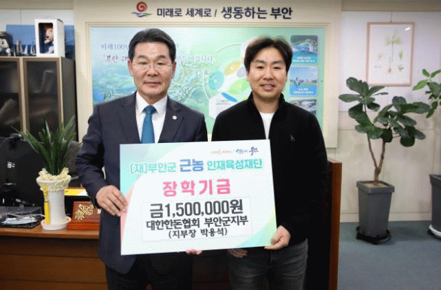 부안군지부 박용석 지부장은 “무슨 일이든 결실을 맺기 위해서는 정성이 필요한 거 같다. 작은 정성이지만, 부안군이 지역발전에 기여할 인재를 길러내는 데 보탬이 됐으면 한다.”며 기부의 소회를 밝혔다.