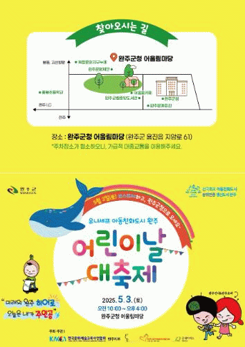 유희태 완주군수는 “완주의 모든 어린이와 가족이 함께 즐길 수 있도록 재미있는 어린이날 대축제를 준비했다”며 “많은 어린이와 가족들이 완주군청으로 와서 맘껏 웃고 즐길 수 있는 하루가 되길 바란다”고 밝혔다.