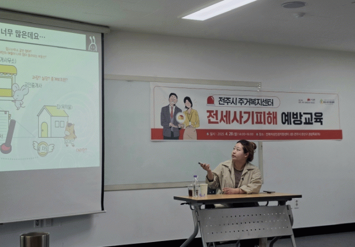 오은주 전주시 주거복지센터장은 “이번 교육을 통해 자활 참여 여성들이 전세계약 시 확인해야 할 주의 사항들을 제대로 숙지하길 바란다”라며 “앞으로도 전세사기 피해 예방 교육 및 홍보를 추진할 것이다”라고 말했다.