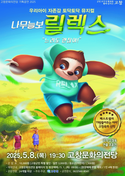 뮤지컬 ‘나무늘보 릴렉스’는 평화로운 아마존에 사는 나무늘보 릴렉스의 모험 이야기로 느림의 미학을 이야기하고 있다.